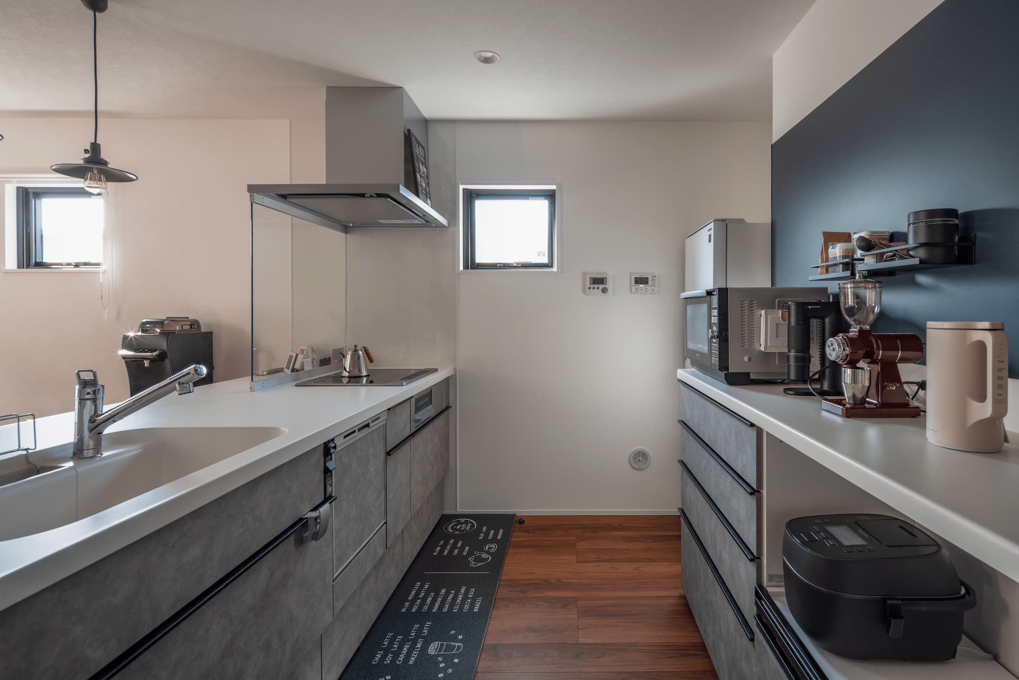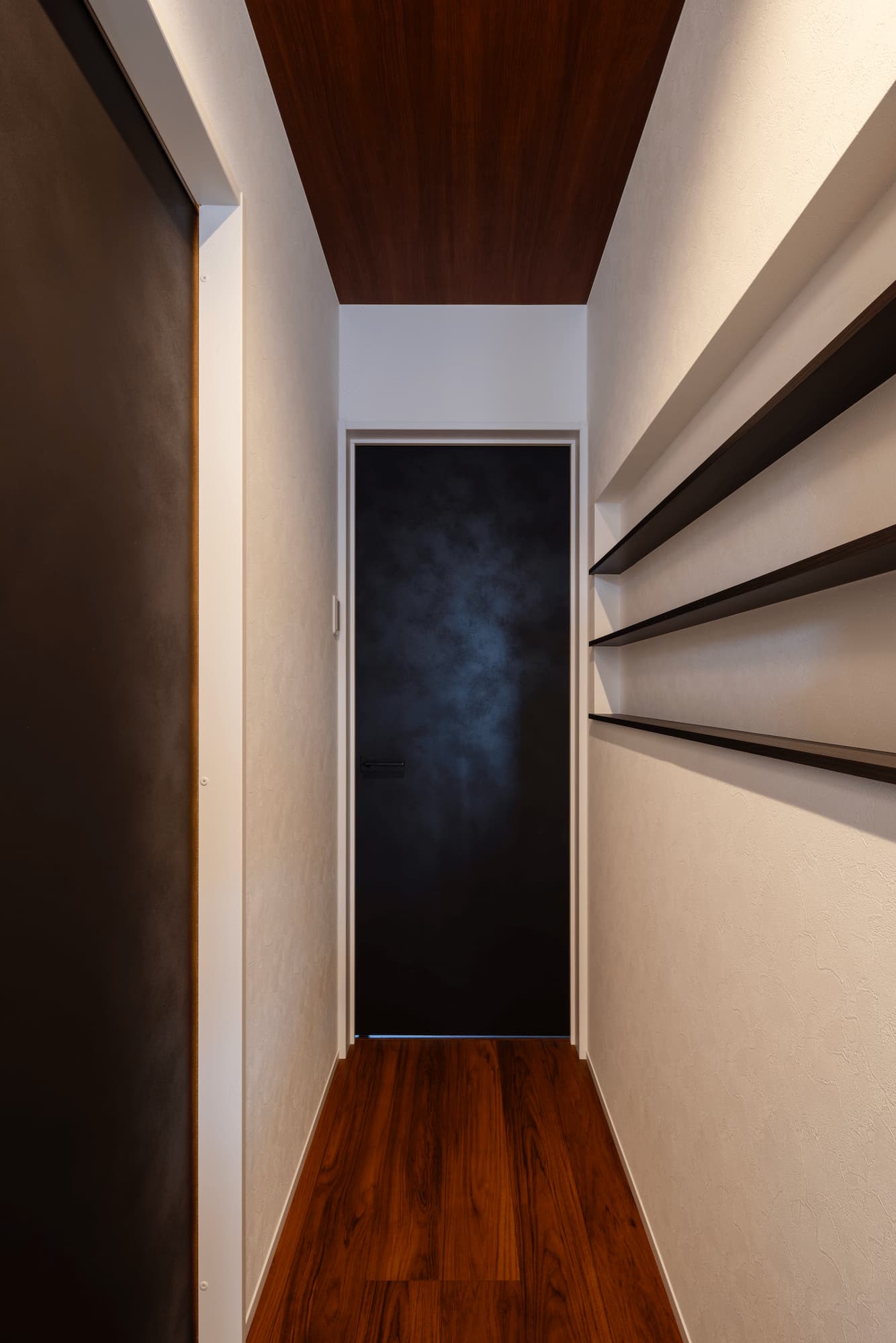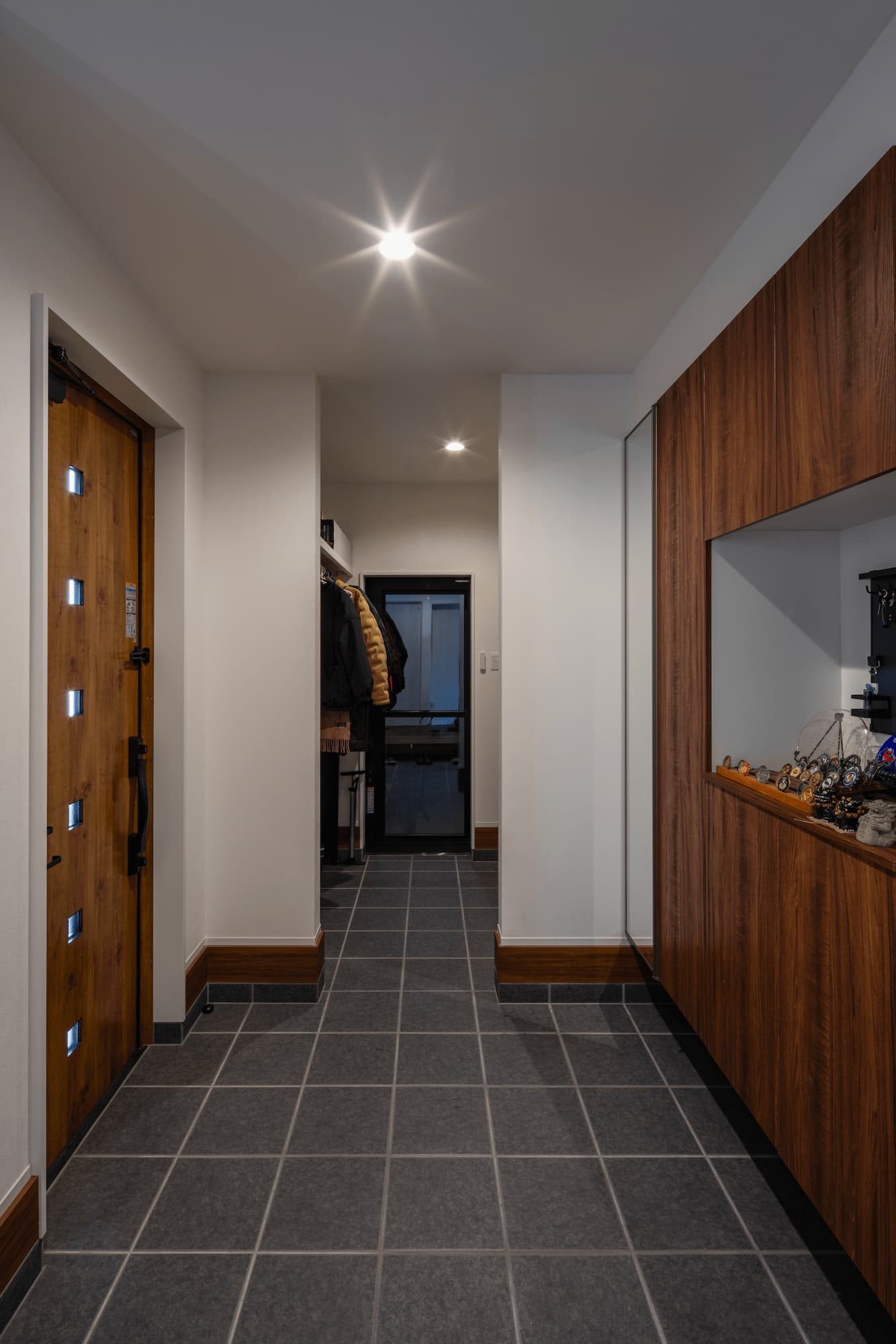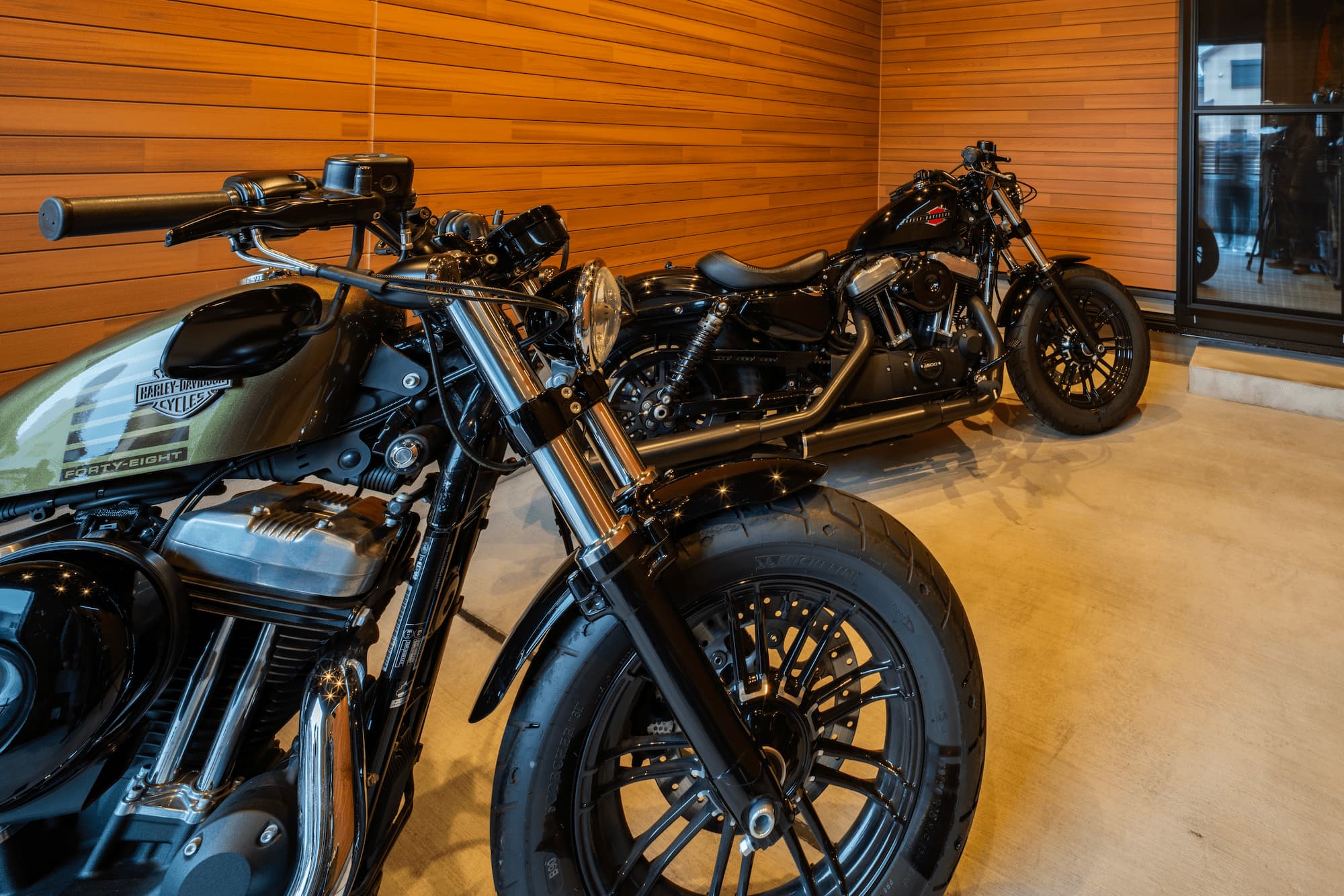 バイクの為に設けたガレージは室内からも直接アクセスでき動線も抜群