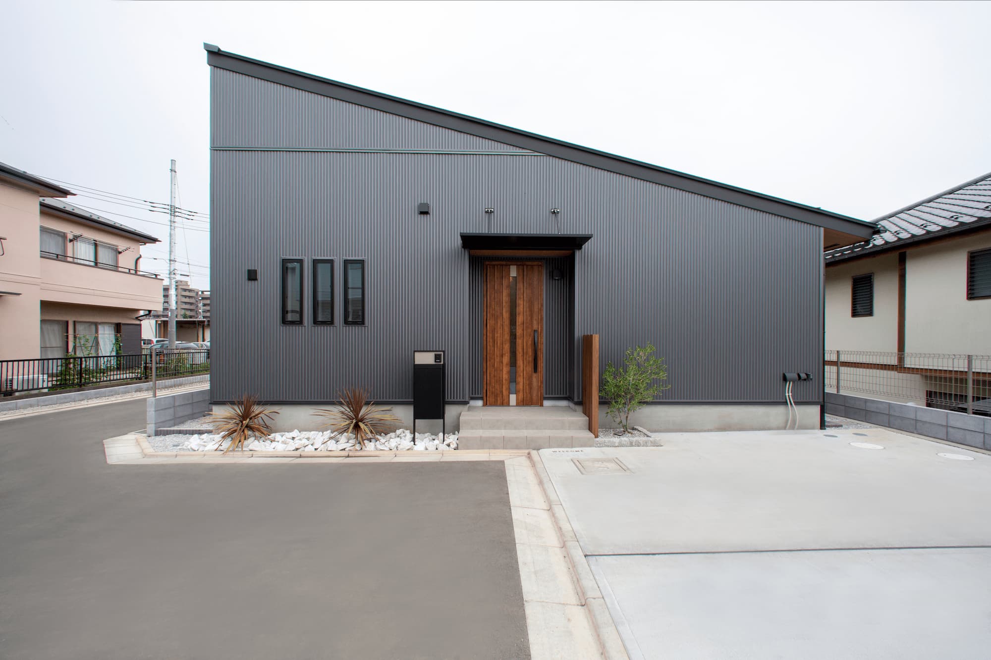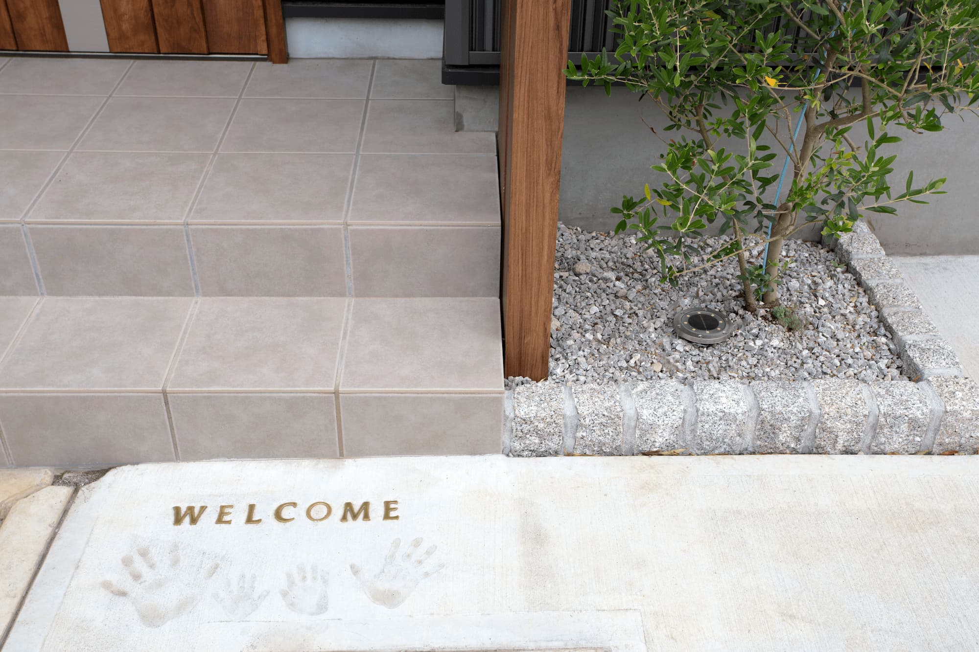 アプローチの真鍮レターには仲の良いご家族の想いが詰まっています。