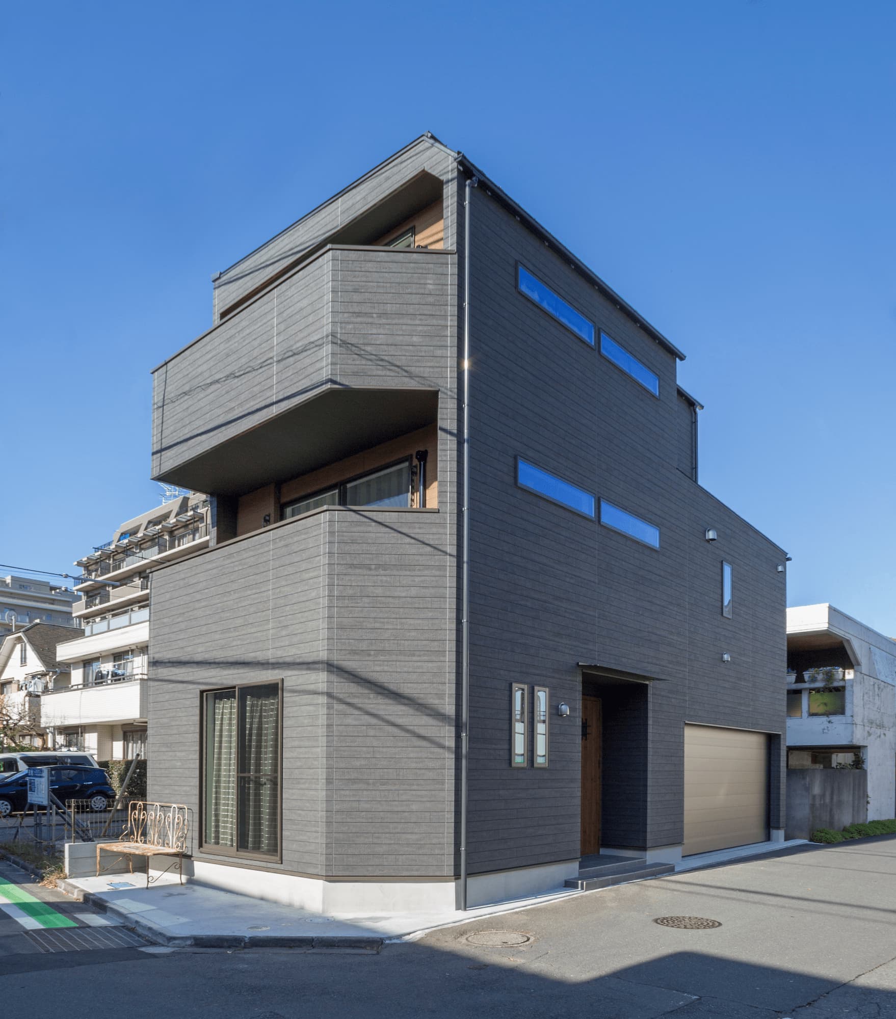 狭小地でありながららも、三階建てにすることでプライベート空間とご趣味の空間を演出することで非常にご満足いただけました。