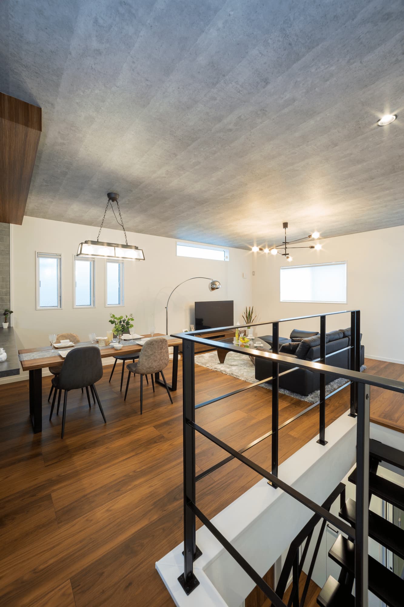 リビングも木目とオープン鉄骨階段を設けることで開放的でおしゃれな空間に仕上げました。