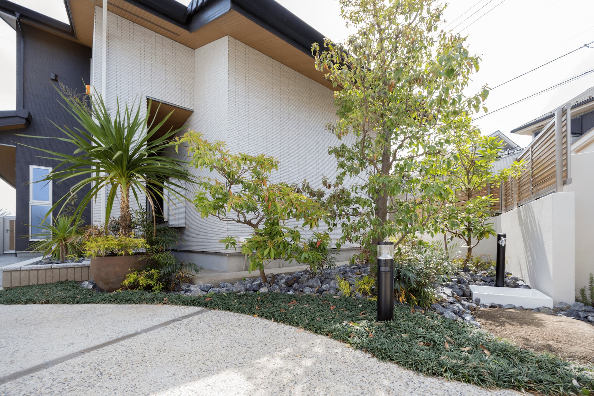 ご来客の多いお客様のご要望を、エントランスのアプローチから中庭などを作り演出。